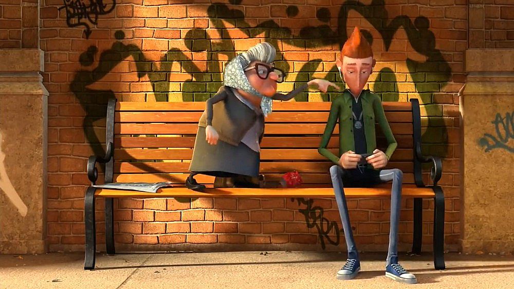 這部三維動(dòng)畫片在短短4分鐘內(nèi)講了一個(gè)不太新鮮的故事,但是卻有自己對(duì)一些問題的獨(dú)特思考,傲慢和偏見經(jīng)常伴隨我們普通人左右,是固定僵化的思維方式,是高人一等的洋洋自得,從視頻中老太太指責(zé)年輕人那幾個(gè)手勢(shì)(電子游戲,沒有禮貌之類的)的畫面可以很明白的看出那些關(guān)鍵詞,其實(shí)都是我們對(duì)超出自己認(rèn)知以及和自己不同的事物所產(chǎn)生的恐懼,這恐懼可能會(huì)以傲慢不屑一顧的方式表達(dá)出來,比如你剛從父輩眼中堅(jiān)強(qiáng)的垮過來,下代人立馬成了你口中即將垮掉的那一批……