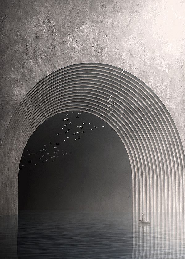 制作這些圖片所應用到的技術需要關注以下三個方面,即把建筑放在某個背景中的效果,人們觀察建筑的角度,以及建筑與人和周圍背景之間的比例。在這些想象中的場景里,建筑就像是原本存在于周圍背景中的元素一樣,整個畫面構圖大膽、渾然一體,充滿著神秘感,成功激起了人們的好奇心。