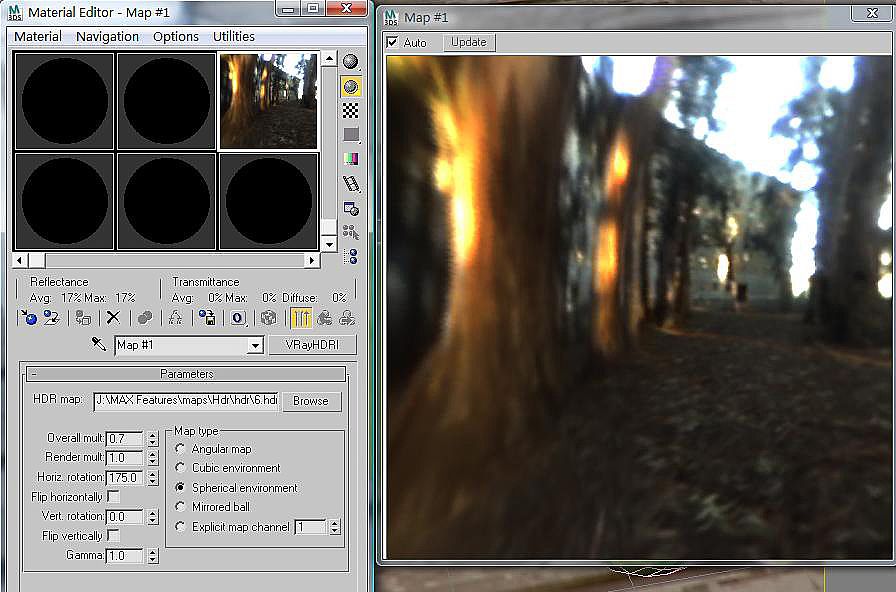 當然用Instance方式復制到材質編輯器里進行些調整還是有必要。Map Type是調整貼圖環境方式,球形,方形等等,利用Overall Mult調整強度的方法如下圖。