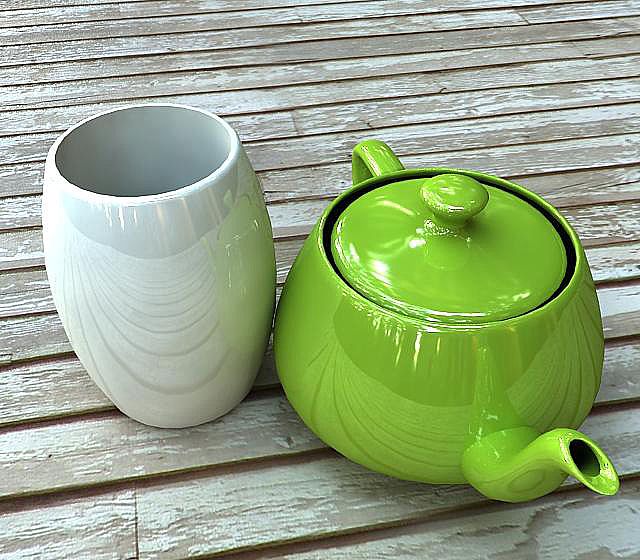 酒瓶有各式各樣的,但是效果圖里一般來說,90%以上都是用葡萄酒瓶。至于這是為什么,可能要寫本社會人類學研究的書了。羅嗦話不說,來分析下這些酒瓶,一般的說來,葡萄酒瓶分透明、不透明,還有一種近似不透明的透明酒瓶。看上圖應該能有個大致印象,上圖還是用HDRI照明的,放置了三個簡單的模型。下面來看下這三種酒瓶的材質編輯器。
