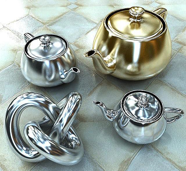 不銹鋼材質的調整靠的是以上四個值的相互調節,比如鏡面不銹鋼的話不需要表面反射的模糊,不用在反射模糊上改動;而磨砂不銹鋼則需要把反射模糊值調整到0.9以下才可以看得出,拉絲不銹鋼的話則在磨砂不銹鋼的基礎上加上拉絲所需要的BUMP凹凸貼圖即可。