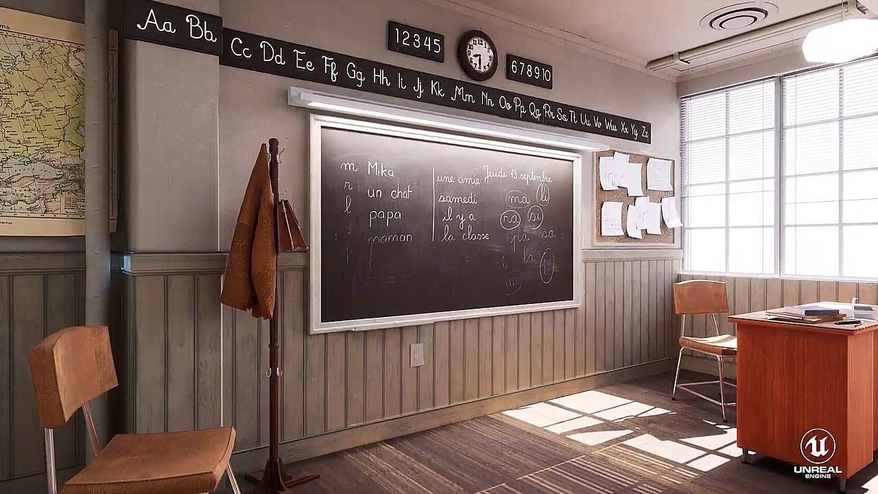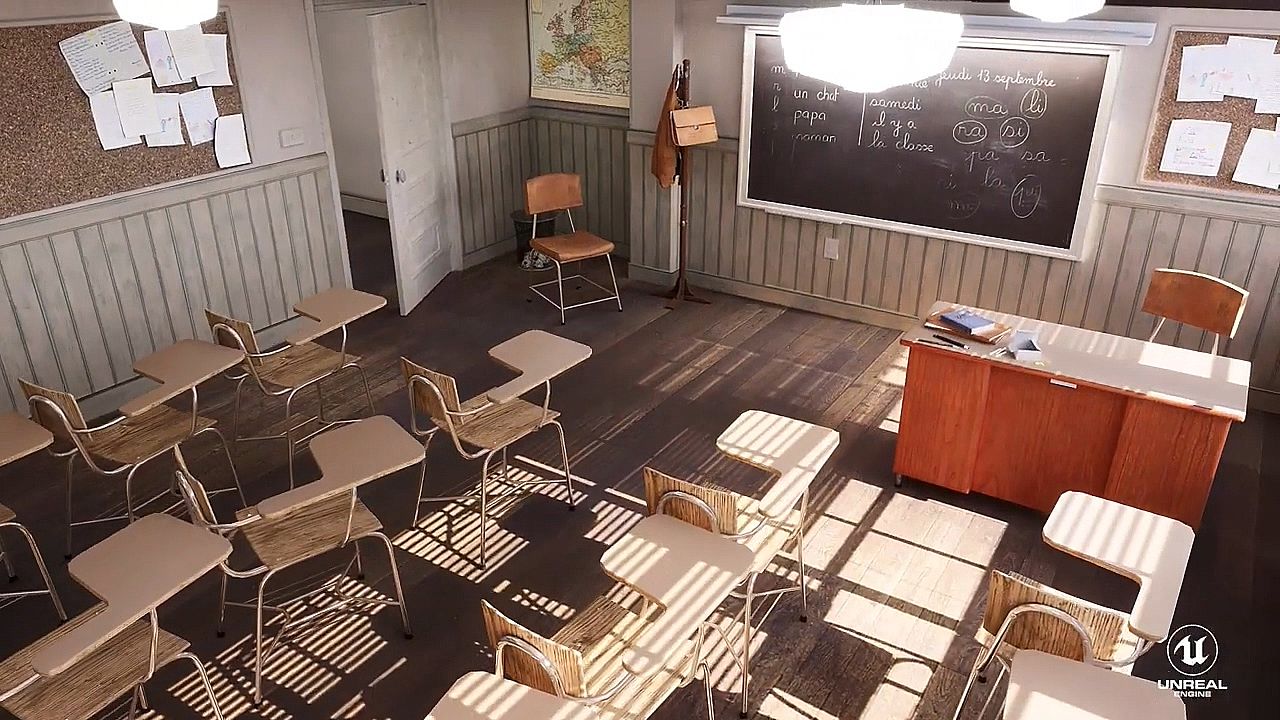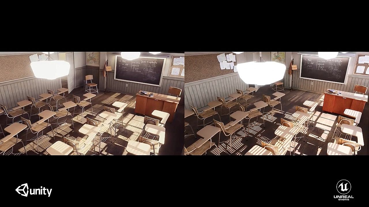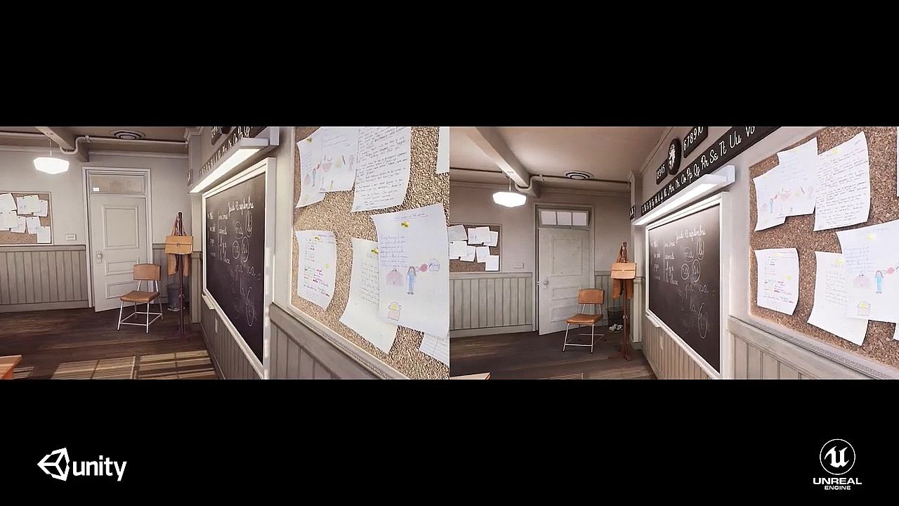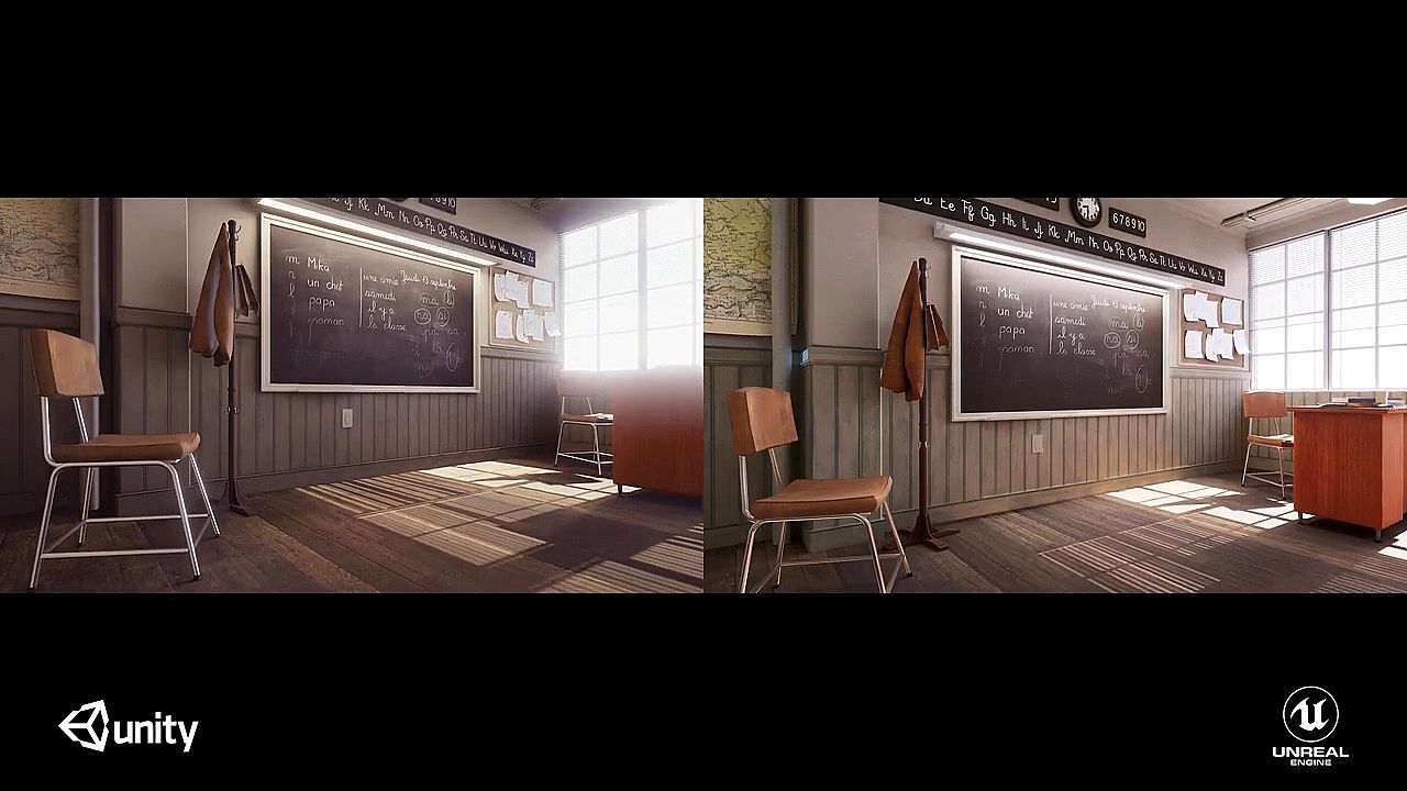 三維教室建筑室內(nèi)場景,UE4和Unity3d渲染質(zhì)感實(shí)測對比