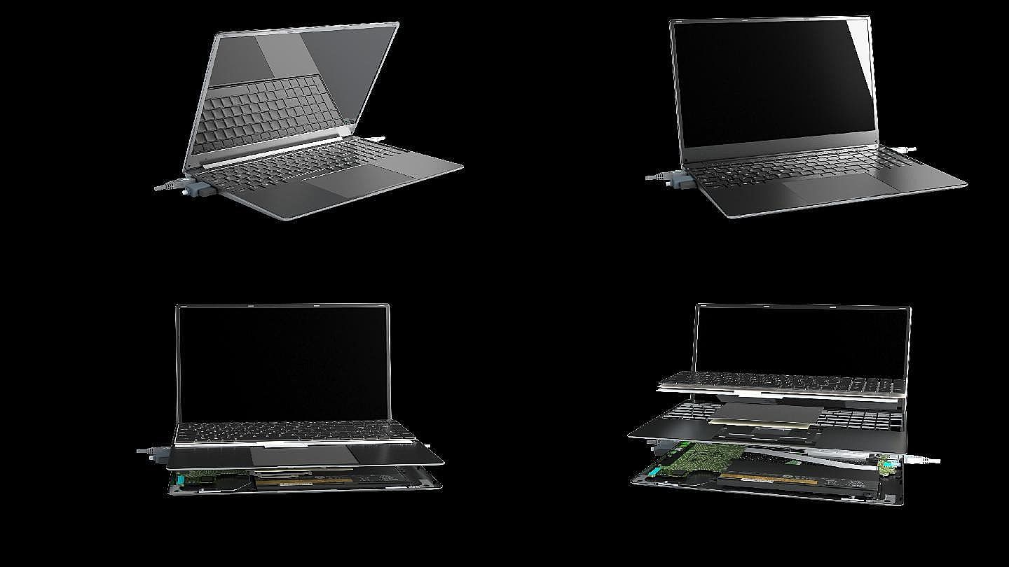 筆記本電腦零件結構分解展示三維動畫鏡頭片段