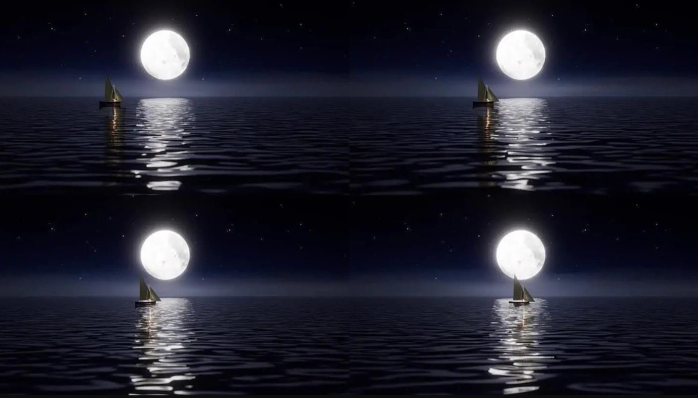海上明月小船水波蕩漾寫意場景三維動畫鏡頭素材