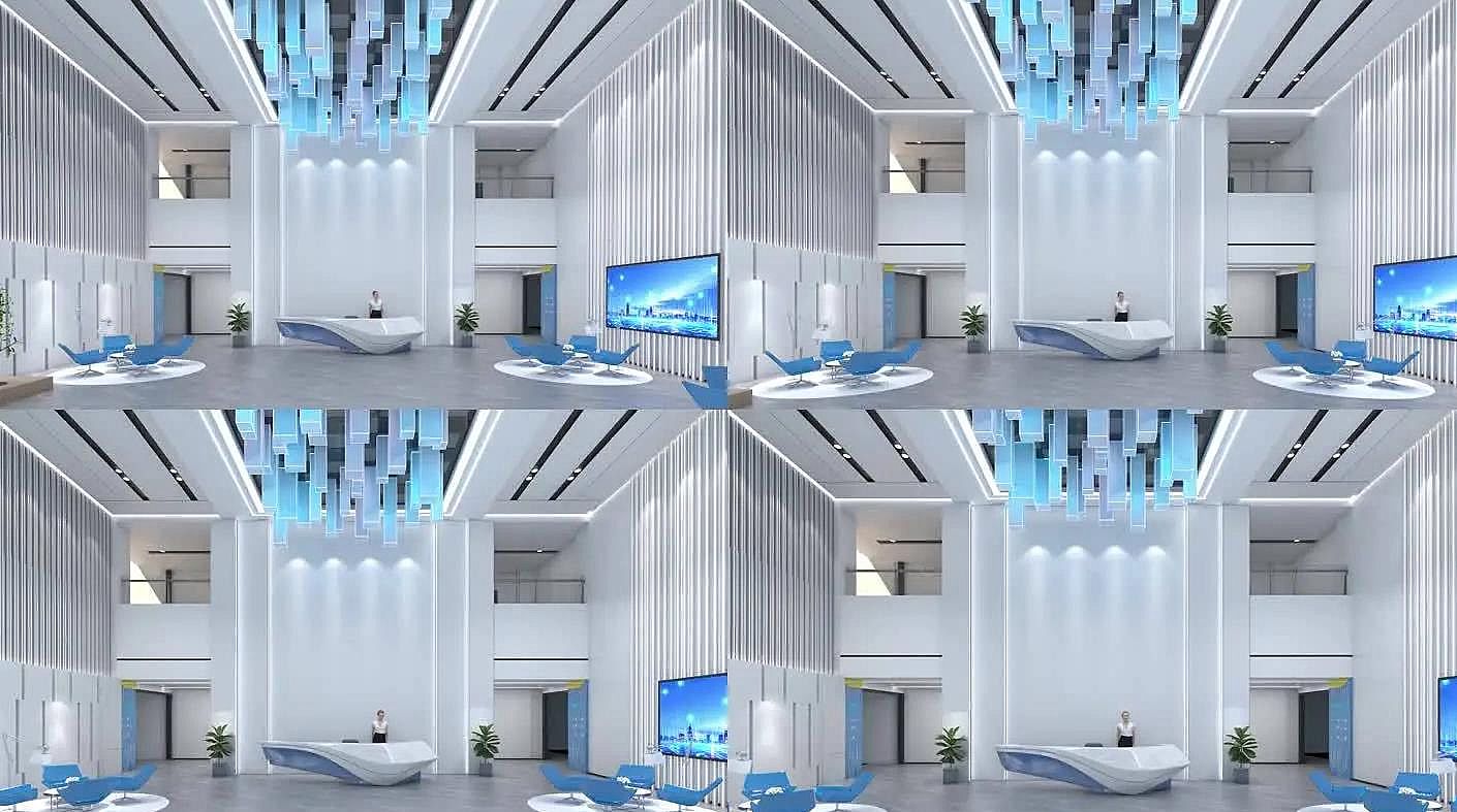 素材標題:科技感商務辦公大堂三維動畫場景鏡頭